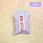 You can fill your Omamori with anything - stones, notes, flowers, tea leaves - something special before tying it up! It comes with a bit of fluff stuffed in already.